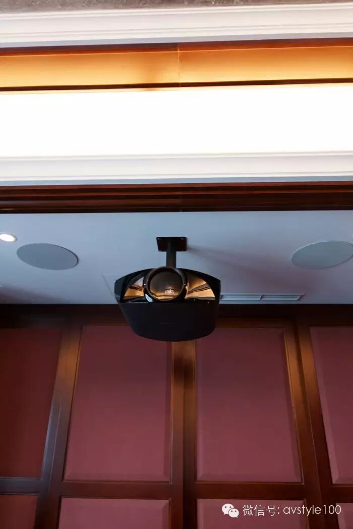 最后就是用了6只的Vanquish,很難想象一只吸頂揚聲器做得那么與眾不同。4單元3分頻。一只8寸低音,2只3.5中音,1只氣動式折疊高音。一只Vanquish像一個臉盆那么大,設計理念是即便8米的層高也可以達到應有的效果。