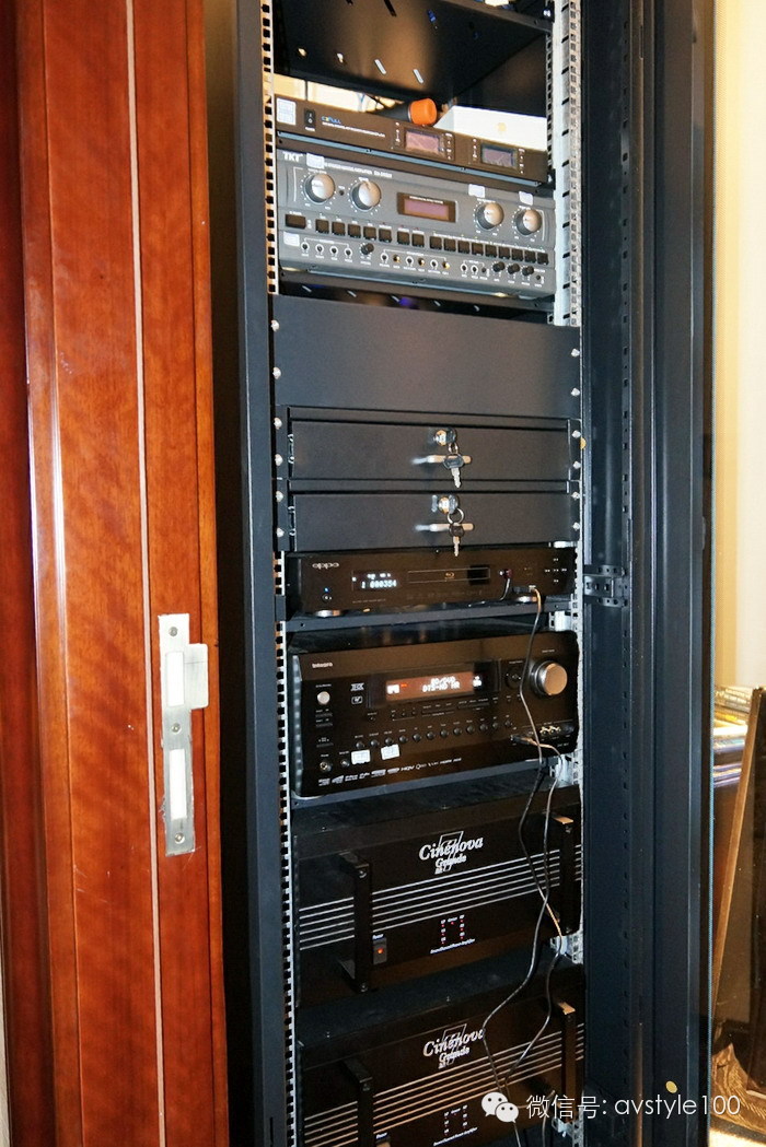 在視聽室邊還有一個獨立的小房間,所有的設備都隱蔽在房間里,全部11.2聲道的能量源泉都來自這里。
