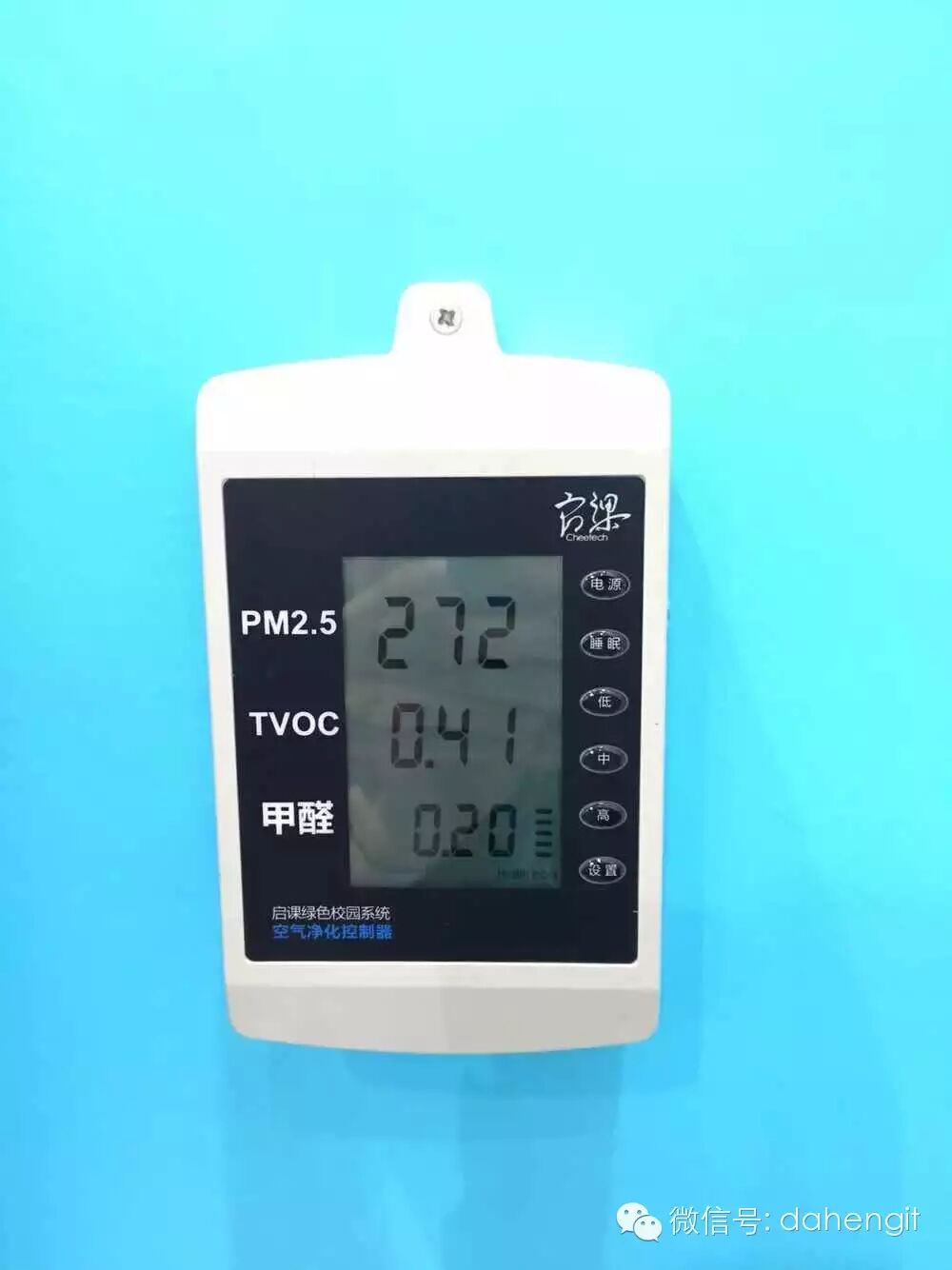 啟課空氣凈化消毒設(shè)備到底有多神奇呢?我們來看一組對比數(shù)據(jù)。啟課的可視化控制終端自動采集并顯示空氣中的各項污染物級別,藍色墻面上的終端顯示的是使用啟課空氣凈化消毒設(shè)備的展位內(nèi)空氣質(zhì)量,灰色墻面上的終端顯示的是展館環(huán)境的空氣質(zhì)量。