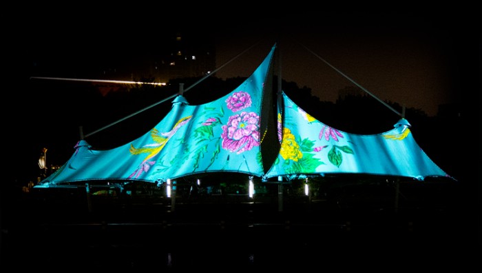 在河畔旁形如風(fēng)帆的景觀建筑上,2臺(tái)巴可UDX將“風(fēng)帆”變?yōu)椤盁o(wú)錫精微繡”,精準(zhǔn)還原細(xì)膩紋理、明暗層次與自然光彩,凸顯非遺文化“錫繡”的形神兼?zhèn)渑c意趣無(wú)窮。